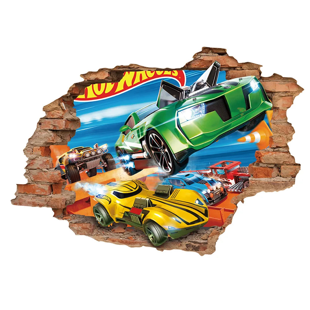 3D breakthrough Toy car racing car Wall Art Stickers Decal Decor Vinyl Poster Mural wallpaper removeable Custom DIY Kids gift
